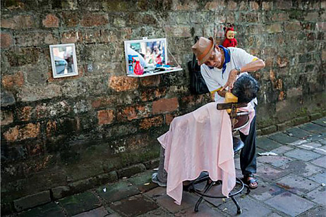 하노이 거리의 이발소